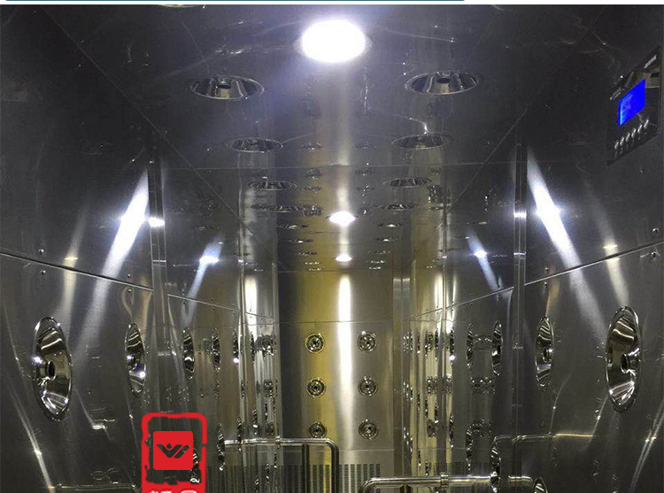 定義:為了減少由于人員進出所帶來的大量塵埃粒子,經高效過濾器過濾后的潔凈氣流由可旋轉噴嘴從各個方向噴射至人身上,有效而迅速清除塵埃粒子,清除后的塵埃粒子再由初、高效過濾器過濾后重新循環到風淋區域內。