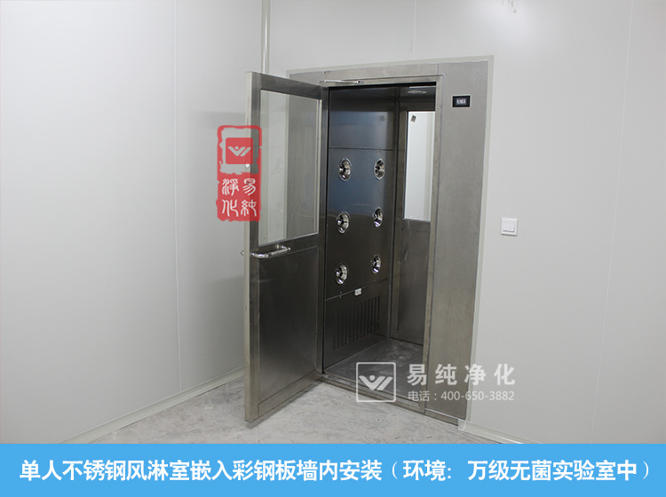 名稱:風淋室(又名空氣浴塵室、風淋房、風淋門、空氣吹淋室、AIR SHOWER,風淋設備,風淋機之類)是人員進出無塵室所必需的通道,并同時起到氣閘室密閉無塵室的緩沖作用,是進行人員除塵和防止室外空氣污染無塵室的有效設備,也是目前凈化車間人員通的必需設備。