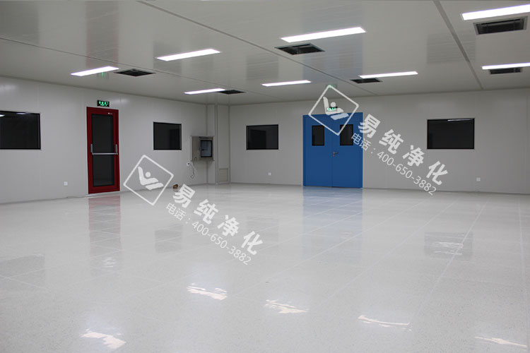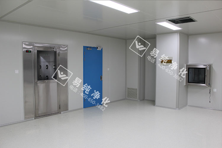 車間內部全部采用A1級凈化板材,芯材為琉陽鎂芯材凈化板,地板采用LG品牌PVC防靜電地板,墻體設置安全門,此安全門為易純專業定制摁壓式安全門,全透明鋼化玻璃,也是此次工程的一大亮點。頂部采用48W超薄型LED燈具,吸頂安裝,既美觀又節能。傳遞窗采用雙層中空門,門體嵌入式安裝,內底部圓弧設置無死角。門窗全部采用雙層中空窗及鋼制成品門,帶德國多瑪閉門器。